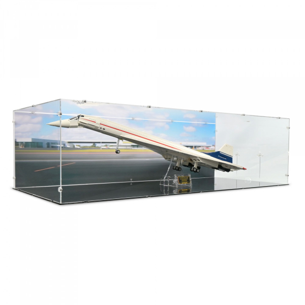 Diese hochwertige Acryl-Vitrine wurde speziell für das LEGO® Icons Set 10318 Concorde entworfen und bietet eine erstklassige Präsentationslösung für eines der elegantesten Flugzeugmodelle von LEGO®.
