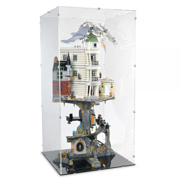 The clear acrylic construction ensures excellent visibility from all sides while reliably protecting the model from dust, dirt and UV radiation. The extra-tall design allows the full vertical structure of Gringotts to be displayed exactly as intended.